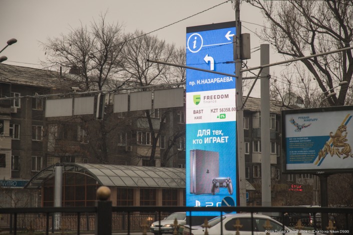 И хотя таблички с новым названием на зданиях пока не появились, на некоторых рекламных мониторах можно заметить указатели на проспект Нурсултана Назарбаева.
