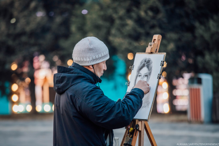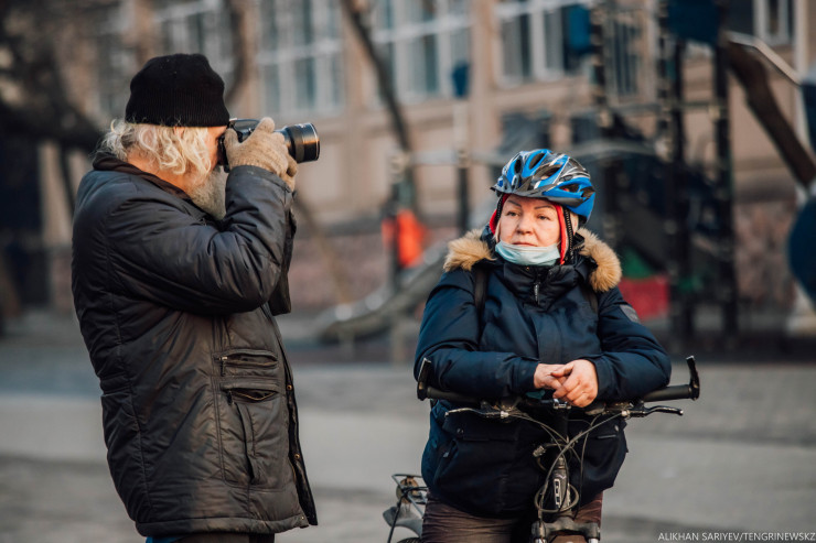 "Мы здесь просто кайфуем, - говорит их коллега Бахытбек, - дарим людям улыбку. Я сюда пришел, когда карантин начался, из-за того, что лишился работы. Получил от государства 42 500, взял фотоаппарат и вышел сюда.