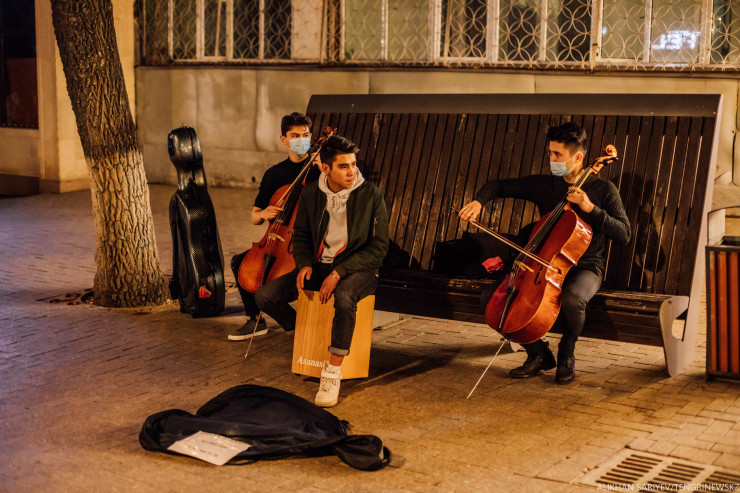 "Вы хотите интервью? Давайте, только быстро", - говорит нам Нуршад, он только подошел к своей "точке", а ему еще предстоит настроить гитару и решить, с какой песни он начнет сегодняшний вечер. Ведь репертуар у него немаленький, и к тому же серьезный: это хиты на турецком, испанском, английском и русском. А еще он владеет казахским и уйгурским языками. На вопрос, как ему удалось выучить столько языков одновременно, парень скромно пожимает плечами, говорит, учил самостоятельно, турецкий, например, помогли понять одноклассники, а на английском он и вовсе случайно заговорил и теперь знает его в совершенстве.