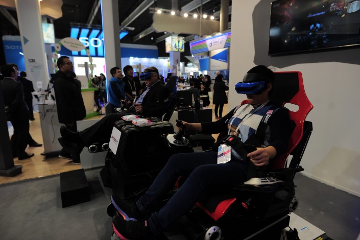 Еще одна фишка выставки - виртуальная реальность. Посетители с большим удовольствием окунаются в мир технологий, да это и отличная возможность дать ногам отдохнуть после многокилометровых походов по выставке.