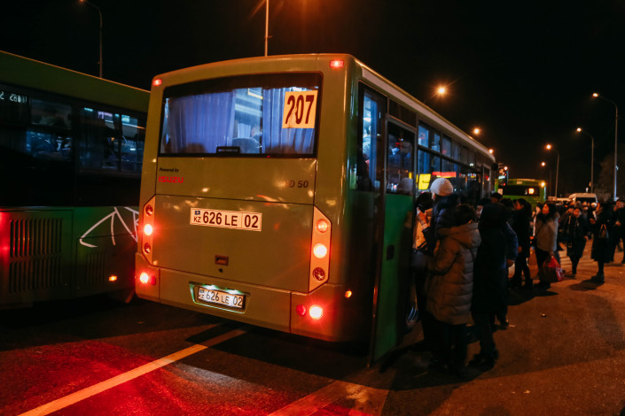 "Можно попробовать дождаться маршрутку, она приходит пустая, едет быстро. Автобусы 207-го приходят каждые 20 минут, но они уже набитые, говорят, где-то на Суюнбая пассажиров начинают брать. Ехать почти два часа стоя после трудового дня я не готова. Еще есть 203-й автобус, но он идет окружными путями и тоже много народа, долгие остановки при полном салоне. Либо еще на такси, но именно отсюда на нем не уедешь. Меньше чем через 25-30 минут отсюда не уедешь, а если снег или дождь - и того дольше. Предлагаю вам назвать статью "Отверженные", мы - отверженные, это прямо про нас".