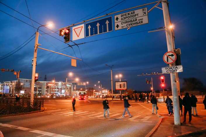 Мы возвращаемся на "Саяхат" к 17:30. Анна должна подойти примерно к 18:15. Мы же решаем понаблюдать, как сегодня живет известный перекресток с "человеческими пробками". Водитель высаживает нас на углу маленькой улицы Есенова и проспекта Райымбека. Мы удивились, что люди голосуют уже здесь. Уехать можно в Иссык, Талгар и все поселки вдоль трасс – Бесагаш, Туздыбастау, Кызыл Кайрат... Однако большинство машин подбирают пассажиров дальше - на пересечении Райымбека с односторонней Джангильдина.