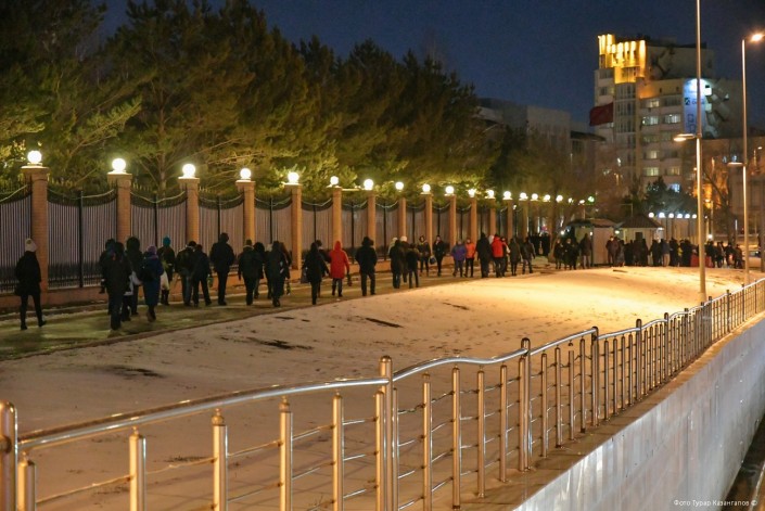 С каждой минутой людей становилось все больше и больше. Кто-то решил поставить свечку и цветы на ступеньках возле памятника Кенесары. И тут же его примеру последовали все остальные.