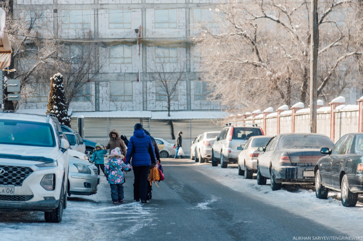 "Мы с ней ходим в школу с казахским языком обучения, дорога занимает 30 минут, а мой внук ходит в другую, и он затрачивает 40 минут", - говорит собеседница.