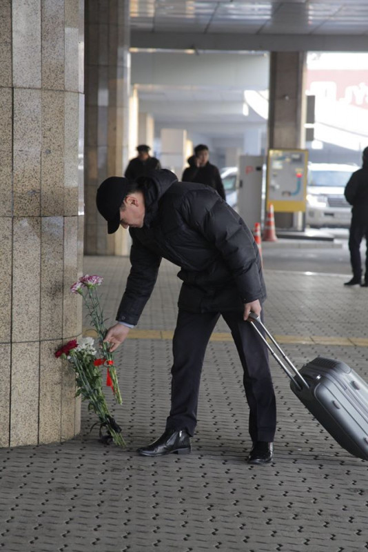 Некоторые люди, чтобы выразить сочувствие, пришли в аэропорт с цветами почтить погибших.