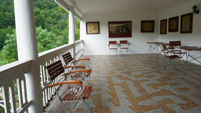 С террасы санатория открывается прекрасный вид на курортный город. В нем проживает порядка 50 тысяч человек.