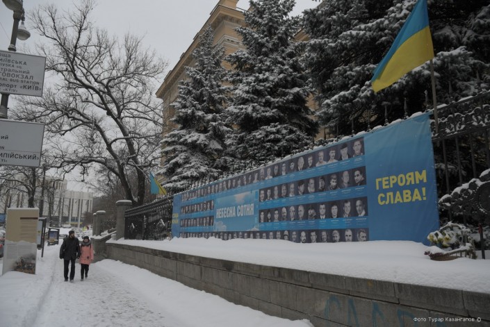 Встречаем еще один мемориал. Это "Небесная сотня" - список жертв Евромайдана. Согласно открытой информации, в столице и регионах Украины тогда погибло 106 человек.