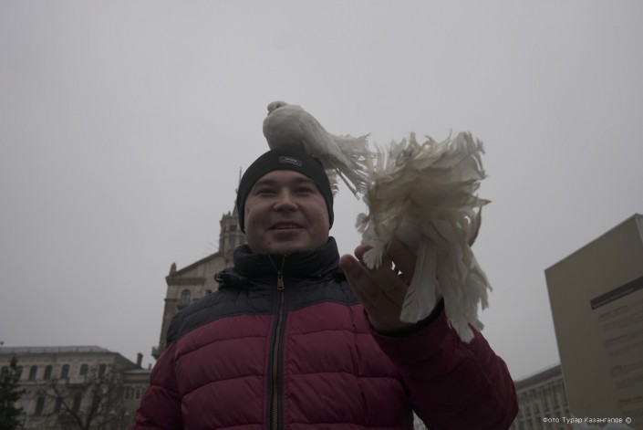 А перед монументом независимости Украины гражданские лица предлагают всем желающим сфотографироваться с голубями и обезьянками.