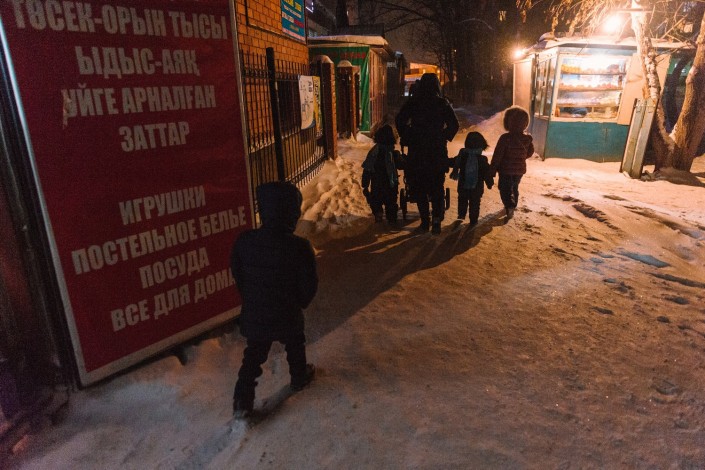 Женщину зовут Алима, у нее пятеро детей. Они снимают комнату в одном из местных общежитий за 35 тысяч тенге. Супруг Алимы работает охранником. "Все хорошие такие, молодцы, вот наше будущее", - восклицает Надежда Дмитриевна.