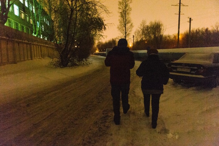 Еще недавно, осенью, чтобы добраться до автобусной остановки местным жителям приходилось пробираться через грязь и руины. Теперь на смену им пришли непролазные сугробы.