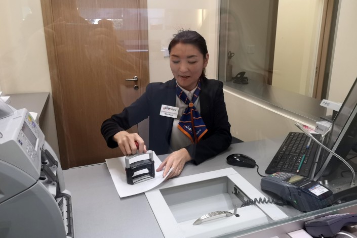 Вручив вертикальную карту № 1 новому клиенту, Руслан Волынец отметил, что теперь Татьяна может бесплатно снимать до 300 тысяч тенге в месяц в любом банкомате по всему миру.