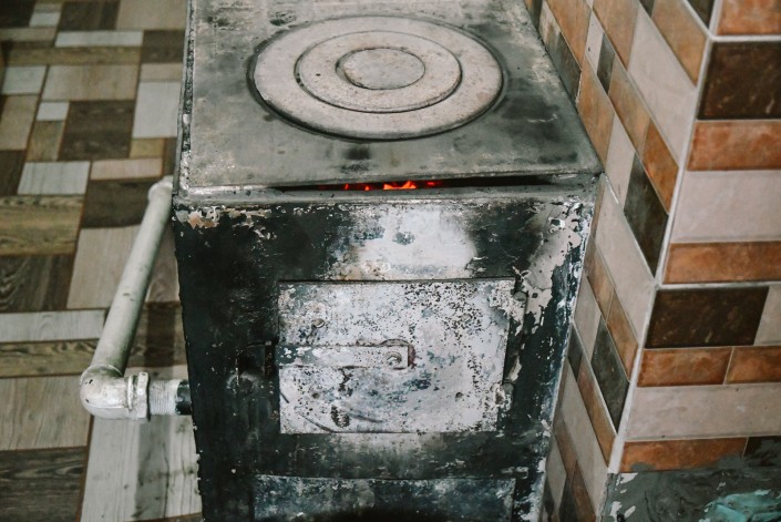 Один из них демонстрирует нам свою кухню. Здесь стоит печь, которую топят углем.