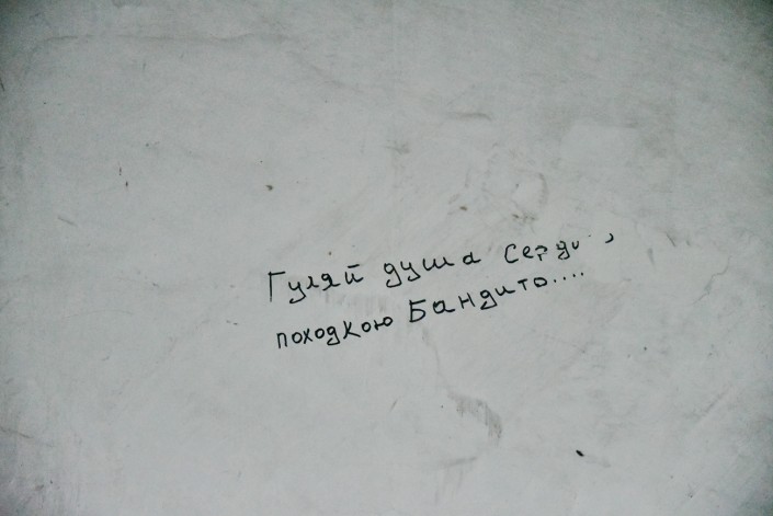 Кстати, в соседней уже выселенной двухэтажке тоже можно заметить одну надпись.