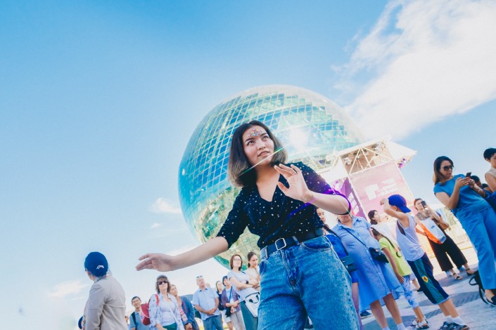 Фестиваль этого года прошел на территории EXPO у подножия сферы "Нур-Алем" на левом берегу столицы. Летняя сцена отбрасывала просторную тень, фонтаны неподалеку веяли прохладой.