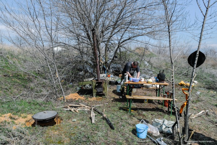 Как и многие другие члены его команды, в обычное время он работает на заводе, а в преддверии майских праздников отправляется на раскопки.