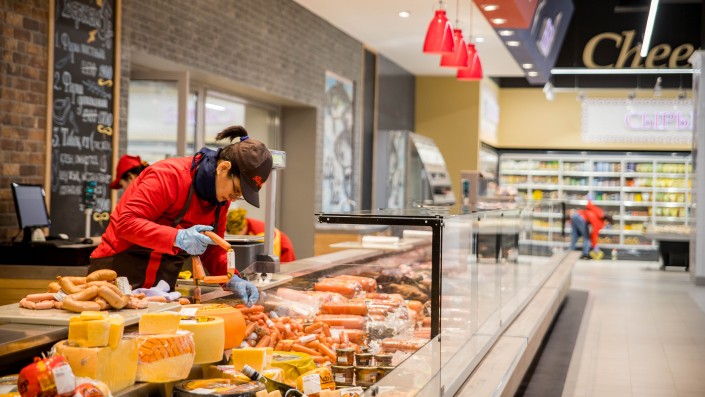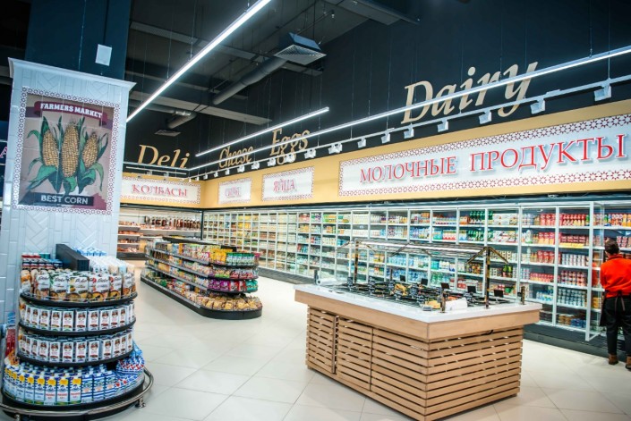 В новом магазине "ВкусМарт" в ТРЦ Saryarqa продуманный и эргономичный дизайн для наибольшего удобства покупателей. Каждая секция имеет свои отличительные черты, поэтому гостям магазина здесь так легко ориентироваться и выбирать для себя продукты.