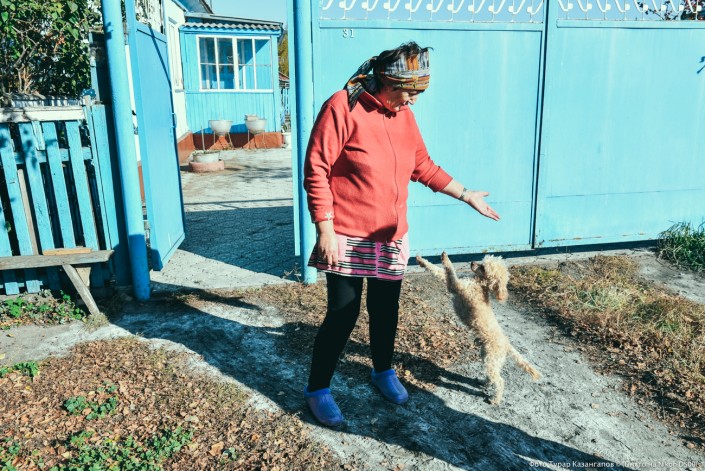 "Вы лучше моего Гошу сфотографируйте. Он вам потанцует даже", - говорит бывший работник почты Валентина Федоровна, указывая на собачку.