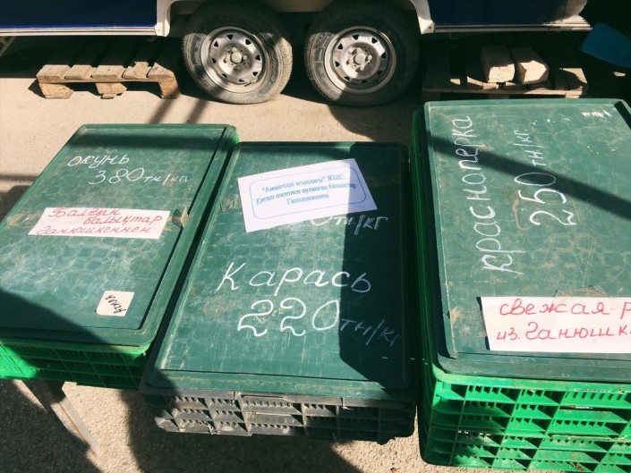 Продавец, слушая наш диалог, добавила: "Это не местная рыба, а из Астрахани".