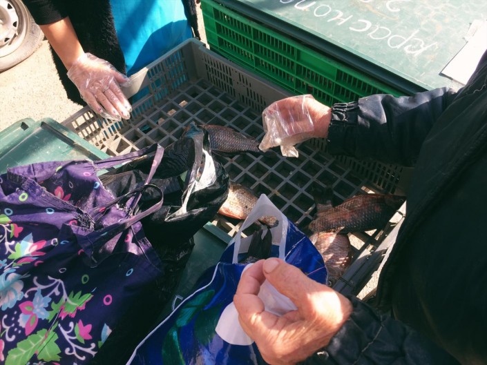 Первое, что мы увидели на набережной в центре города, это живая рыба, которая резво плещется в воде.