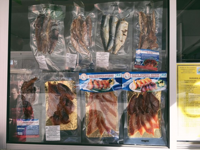 На улицах Атырау в специальных торговых точках можно встретить большой ассортимент рыбы.