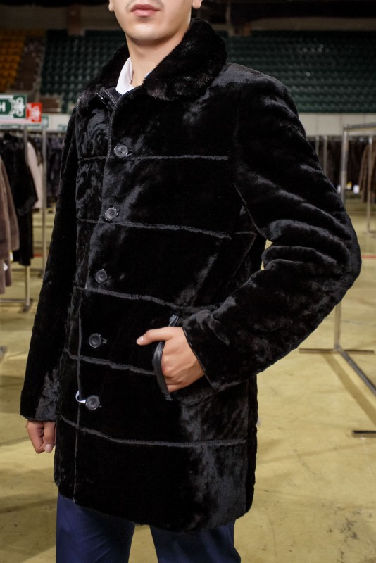 В таком пальто из комбинированной норки и мутона мужчина всегда будет в тепле.