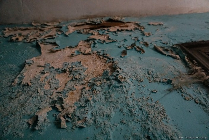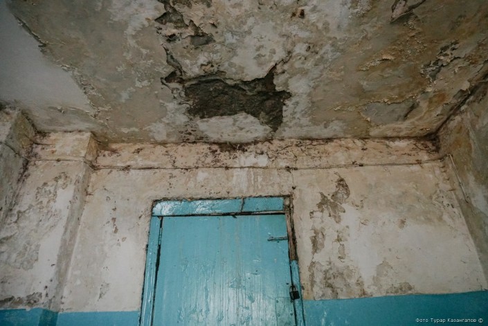 "Вот здесь крыша течет. Я еще не успела покрыть крышу в этом году, и вот до шифоньера у меня стенка обваливается. Каждый год крышу приходится крыть, потому что в бетоне уже есть ручейки, мы-то крыши свои кроем, а вода внутрь все равно продолжает течь", - рассказывает Рита Габдулхакова. Она живет здесь уже с 1991 года.