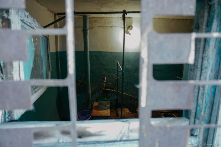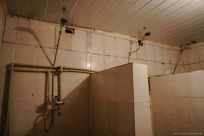 А еще в общежитии есть общий душ. В нем самые активные жильцы пытаются делать ремонт, но кажется, сырость каждый раз побеждает.