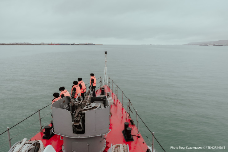 "В море становишься более отрешенным от мира. А когда возвращаешься на пирс, то чувствуешь, как будто ты  дома", - делится впечатлениями матрос Ерсин Зейнулин из Караганды, служит он восемь месяцев, это его уже 12-й выход в море.
