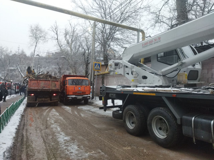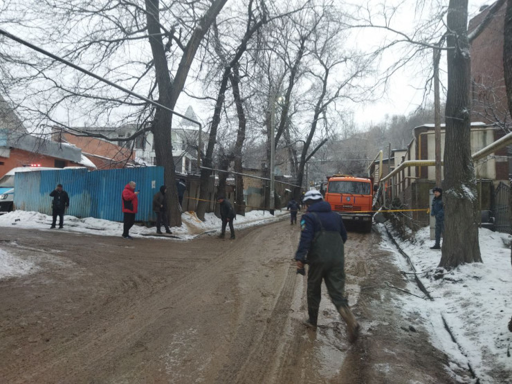 Сам проезд по узкой улице Оспанова перекрыли патрули полиции, чтобы не допускать к опасному месту автомобили и расчистить дорогу для тяжелой техники.