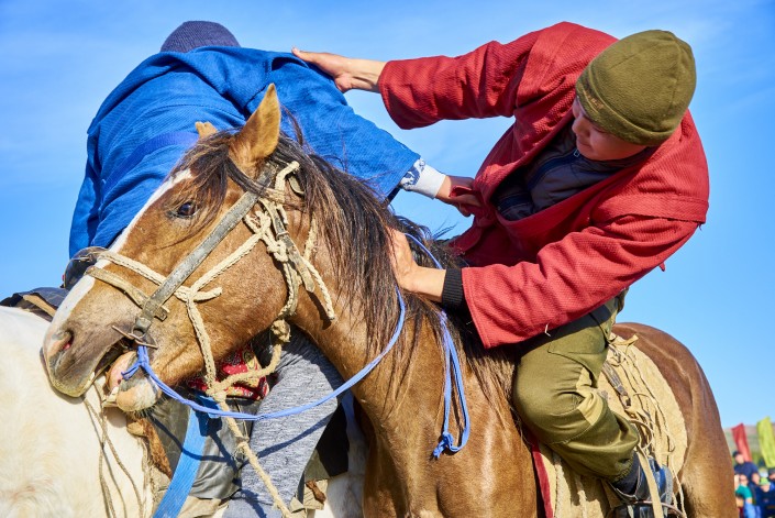 Особый восторг вызвало состязание женщин -"Қатын күрес". Настоящие казахские джигиты померялись силой в "Аударыспак".