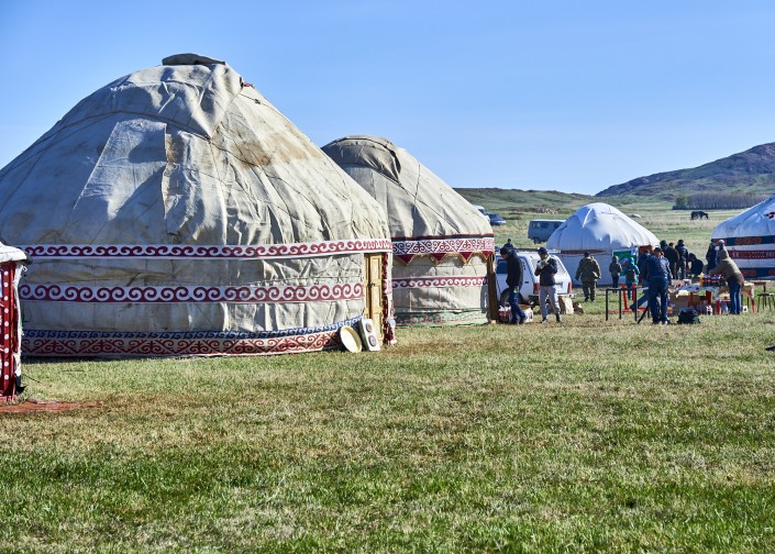 Здесь, у подножья гор Улытау, на несколько дней раскинулся юрточный аул. Участникам события предстояло пожить в "полевых" условиях три дня. Впрочем, это ничуть не огорчило гостей.