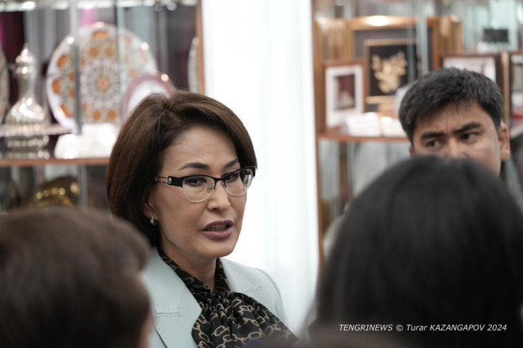 Журналисты окружили главу Минздрава Акмарал Альназарову. Она отвечала на вопросы, хоть и опаздывала на заседание.