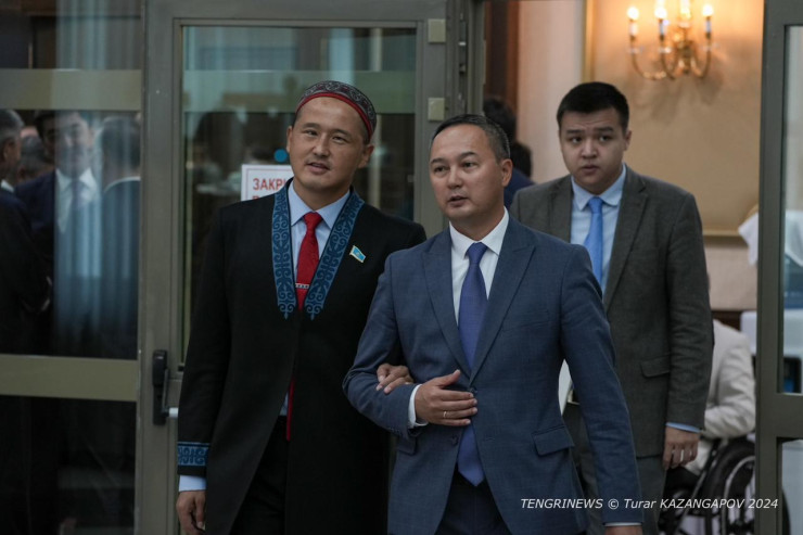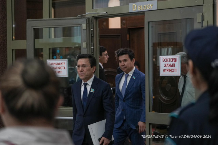 Мажилисмены Азат Перуашев и Никита Шаталов в предвкушении летних каникул и отдыха дружно направились к выходу.