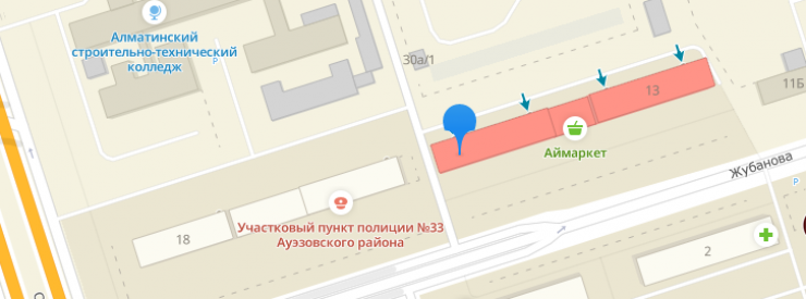 На карте видно, что по всему Алматы зафиксированы пиковые показатели преступности. Но если изучить подробнее, то можно заметить, что в доме № 13 по улице Жубанова криминальные сводки мелькают чаще других.