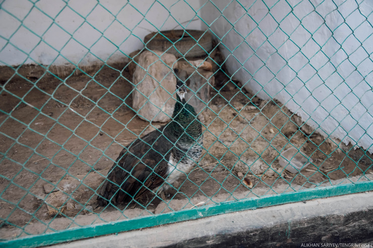 А еще у нас живет павлин, его нам подарили знакомые из Туркестана. Сейчас ему два года, это девочка.