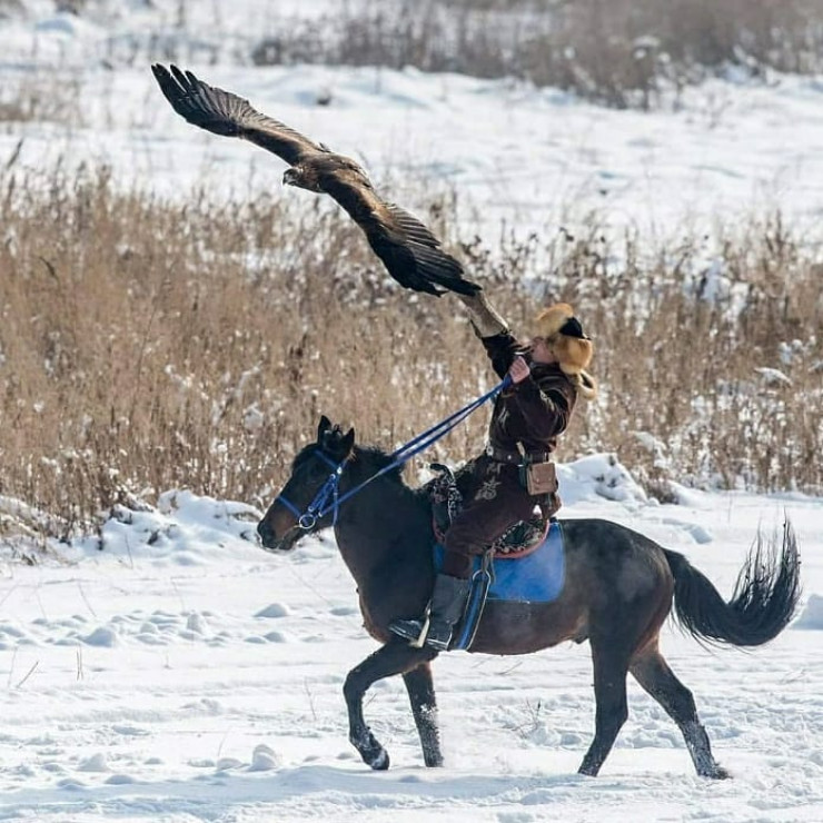 В мире беркутами занимаются только киргизы и казахи, в Европе - соколами и ястребами. В самом Казахстане сейчас осталось около 100 беркутчи. А из тех, кто тесно работает с хищником, будет человек 50. Сейчас кто попало не может взять беркута, они ведь в Красной книге, и из первого попавшегося гнезда их тоже брать нельзя. У каждого беркута должен быть свой паспорт, микрочип, за рубежом это требуют.