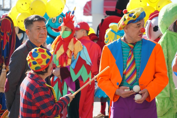 Утро на столичном вокзале Нурсултан-1 сегодня получилось не совсем обычным. Сначала пассажиры, ждущие свои поезда, обратили внимание на людей в белых футболках, а затем и вообще произошло неожиданное. Навстречу опешившим охранникам вместо пассажиров с баулами через металлические рамки вдруг начали проходить клоуны, Джинн и даже Мальвина.