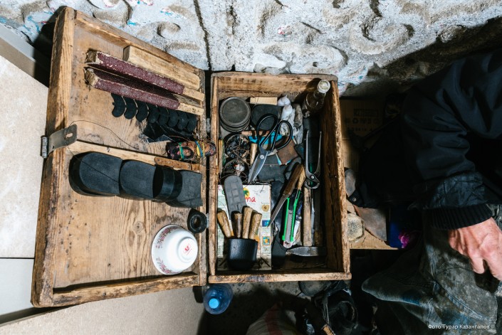 Ремонтом обуви он занимается уже десять лет. В среднем за работу берет 500-600 тенге.