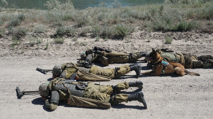 Об этих и других тонкостях подготовки десантников корреспондент Tengrinews.kz узнала во время посещения воинской части десантно-штурмовых войск Талдыкорганского гарнизона Минобороны. Журналистам здесь показали, как работают миноискатели, продемонстрировали образцы вооружения и военной техники, познакомили с участниками миротворческих операций в Ираке. А еще показали процесс очистки воды из реки, которой военнослужащие потом напоили журналистов.