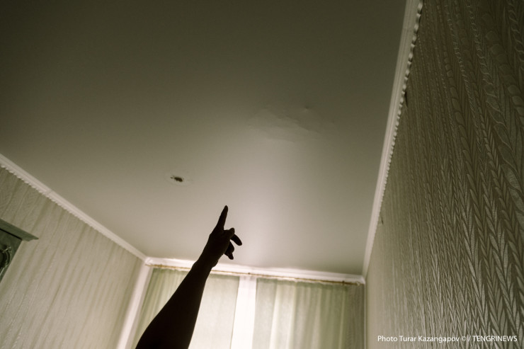 "А нет смысла их вешать, потому что они могут упасть. Во время каждого дождя нас заливает. Даже электричество отключаем, потому что может замкнуть. Заливает подъезд и шахту лифта. Поэтому крыша для нас сейчас первостепенная задача. Нужно срочно ее отремонтировать, а на это нужны деньги", - говорит владелица квартиры Забиба.