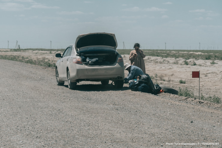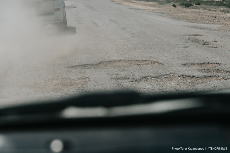 "Уже года два как начали что-то делать на этой трассе. Атырау - Астрахань - очень проблемный участок, часто аварии бывают, к тому же климат здесь жаркий, многие машины не выдерживают температуру, дороги убитые, колеса разбиваются, я вот лобовое стекло менял недельки две назад, уже все в трещинах", - рассказывает водитель из Атырауской области Женис.