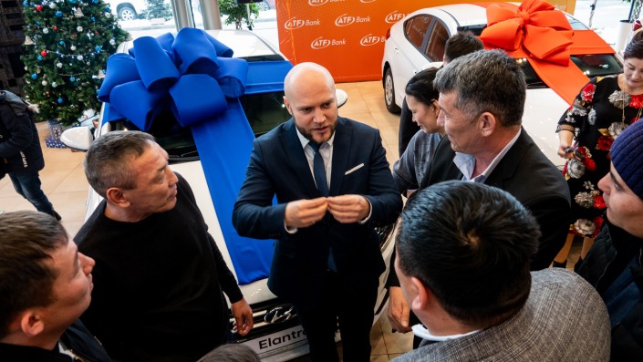 26 декабря АТФБанк провел торжественную церемонию вручения главных призов. В алматинском Hyundai-центре собрались как победители розыгрыша, так и члены их семей. Встречал гостей лично управляющий директор АТФБанка Руслан Волынец.