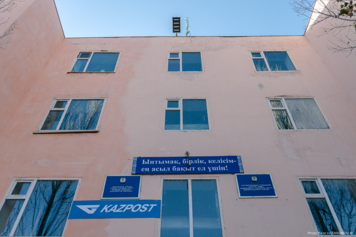 А это местный акимат. Здесь располагается почта, полиция и другие учреждения.