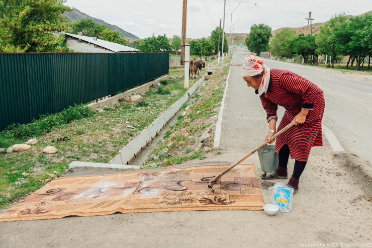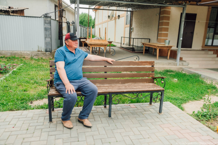 Сначала мы попытались найти контакты гостевых домиков в интернете. Но интернет у меня исчез еще на подъезде к поселку. Приходится действовать по старинке. Заходим в первый попавшийся дом. Нас встречает хозяин Алтынбек. Он хорошо знает, как здесь все начиналось. Говорит, что в Кольсае еще при Советском Союзе были дома отдыха, туристы из города приезжали, но столько людей тогда не было, и дорога была грунтовая, с ямами.