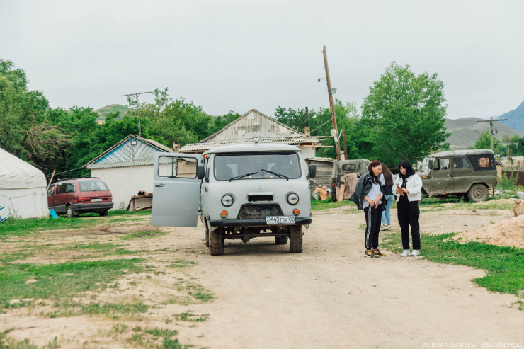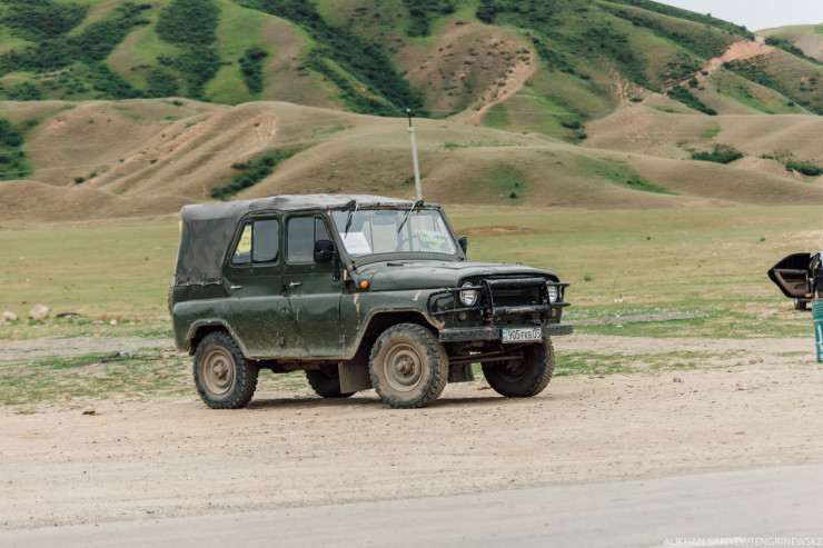 Под видом туристов идем общаться с таксистами, которые возят гостей до озера. Самый ходовой транспорт здесь - это УАЗики. По другому никак, объясняют нам водители. Если до Кольсая дорогу сделали, то до Кайынды ее нет в принципе. А туда минут 40 ехать. К слову, стоит это "удовольствие" две тысячи тенге.