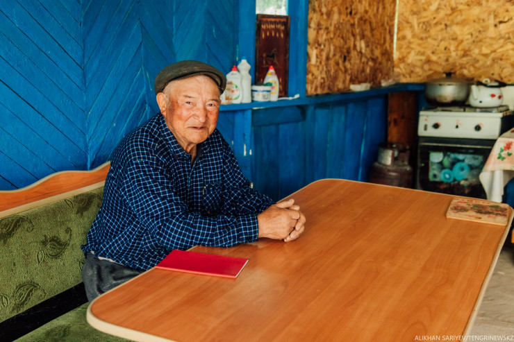 Уже на выезде из поселка мы познакомились с Нурланом-ата. Он здесь большой герой. Когда мы попросили его рассказать об этом месте, он вспомнил очень грустную историю.
