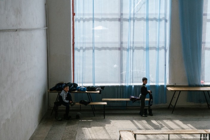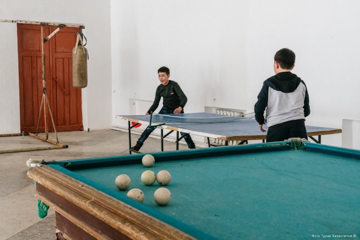 Ребята рассказали нам, что здесь есть секции бокса и футбола.