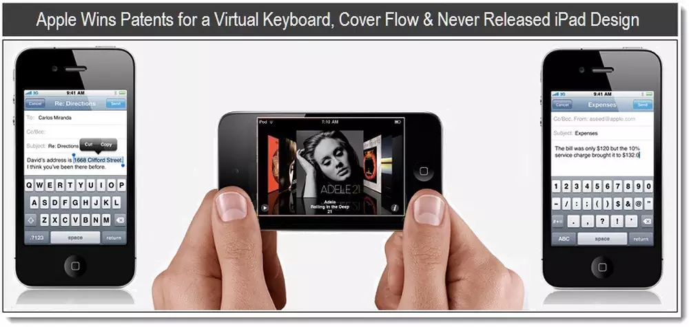 Патент на виртуальную клавиатуру, которая применяется для ввода информации на смартфонах iPhone, медиаплеерах iPod touch и планшетах iPad, был подан в 2007 году. Тогда же и дебютировал смартфон с яблочным логотипом.