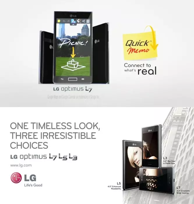 L-серия смартфонов Optimus включает в себя модели Optimus L7, L5, L3, которые представляют стиль вне времени, сохраняя при этом исключительную функциональность, в черном или белом корпусе. LG также представит телефон в стильном розовом цвете в рамках смартфонов L-серии.
