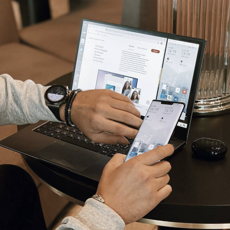 Уже в январе 2021 года в Казахстане в ноутбуках Huawei MateBook D14 и MateBook D15 пользователям была представлена функция совместного использования экрана "Мультискрин". Функция обеспечивает еще более простое подключение смартфона к ПК с помощью технологии NFC: достаточно лишь коснуться смартфоном специальной метки на ноутбуке. После подключения экран смартфона отображается на экране ноутбука, а пользователю становится доступна беспрепятственная передача файлов по Wi-Fi и Bluetooth, а также управление смартфоном с помощью тачпада и мыши ноутбука.